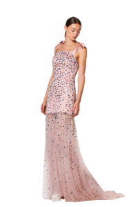 Off-Shoulder Gown with Embellished Sheer Skirt