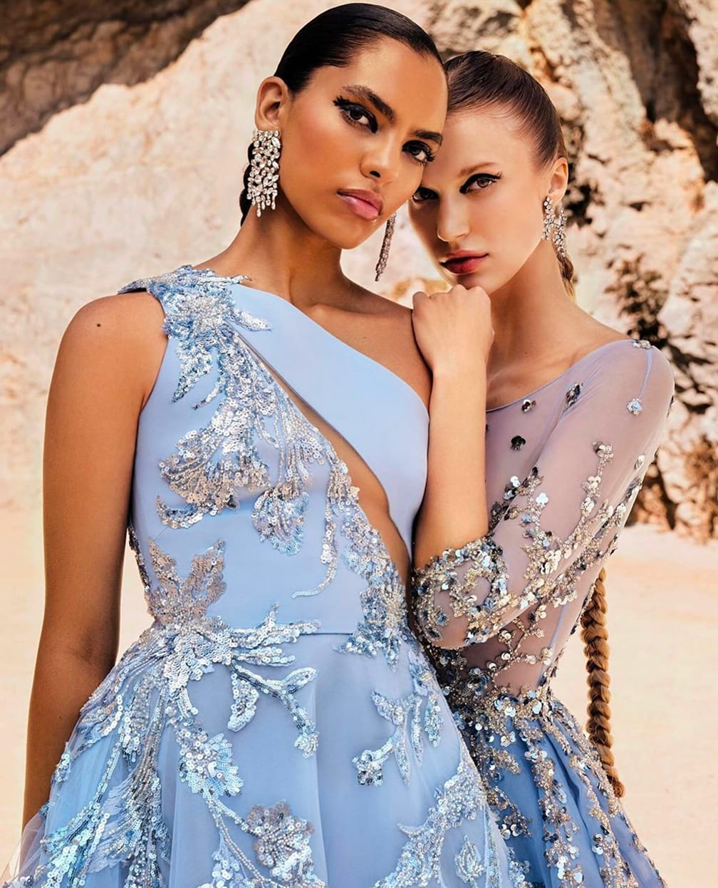 Off-Shoulder Gown with Embellished Sheer Skirt